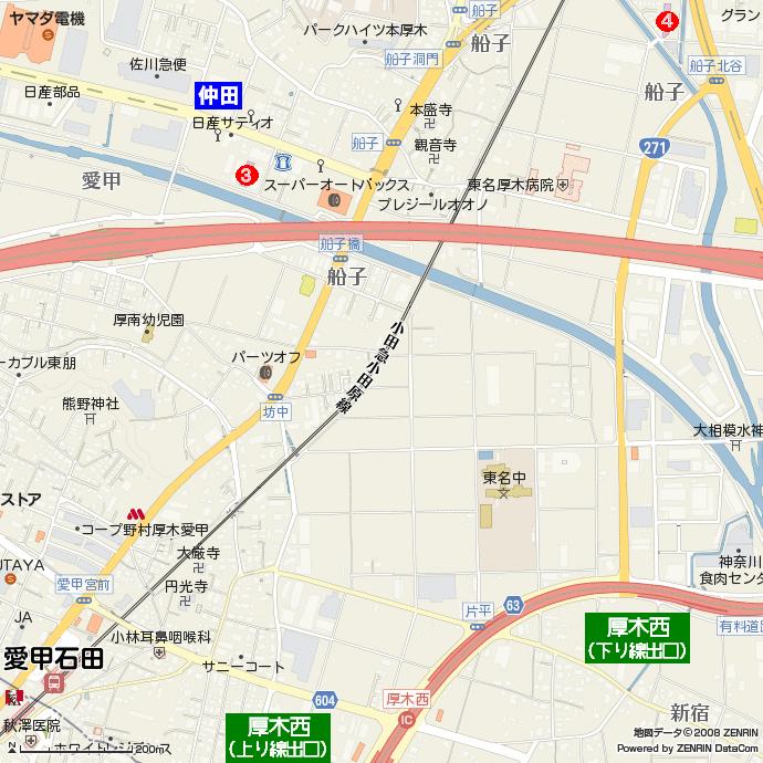 「愛甲宮前」交差点から950m先、「森の里入口」交差点を左折。